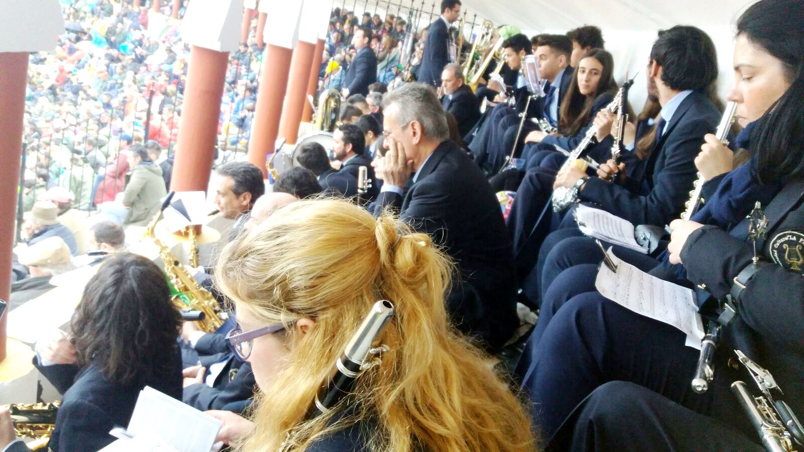 Pese a que el tiempo no ha sido el más apropiado este fin de semana, no ha sido obstáculo para que nuestra banda de música haya cumplido su cometido: estando presentes viernes, sábado y domingo en la Plaza de Toros de Olivenza, presenciando y acompañando musicalmente los primeros festejos de la temporada.
