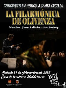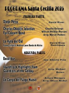 Se acerca una la fecha más señalada en nuestro calendario: la festividad de nuestra patrona Santa Cecilia (22 de noviembre), y es un honor invitaros a nuestro Concierto en Honor a Santa Cecilia 2025, que se celebrará este sábado 29 de noviembre, a las 20 horas, en la Casa de la Cultura.
