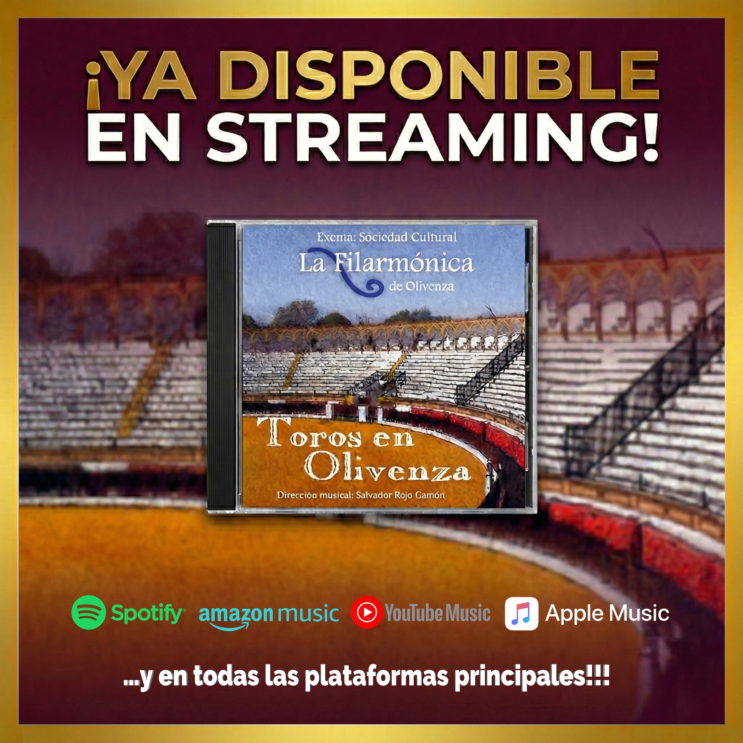 Con este lanzamiento, desde La Filarmónica de Olivenza ponemos a disposición de cualquier aficionado a la música de banda y a la tauromaquia pueda disfrutar de estos sones desde su teléfono móvil o dispositivo inteligente, los 365 días del año, desde cualquier rincón del mundo.